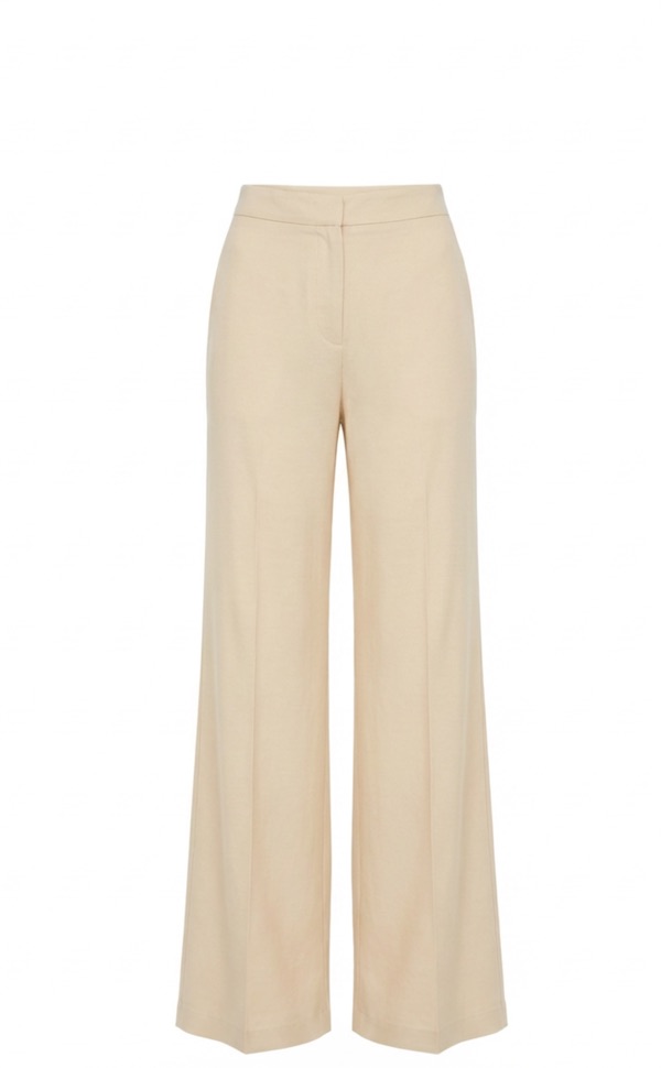 白色金扣阔腿裤装