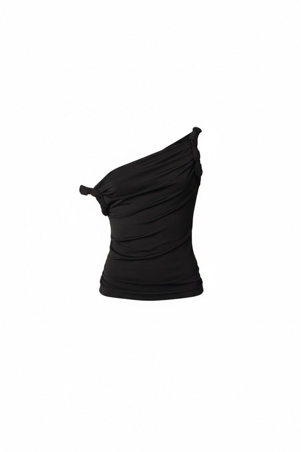 黑色褶皱单肩上衣